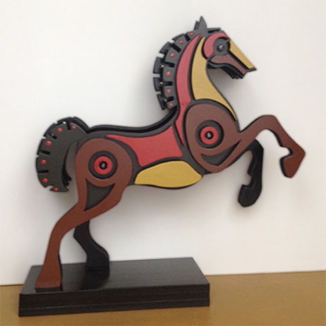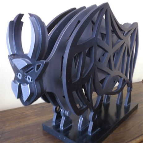 Del croquis, el dibujo o la fotografía, pasa a un archivo digital vectorizado que se plasma, por ejemplo, en un tablero de madera que luego se corta con la precisión de la técnica. Son planos sucesivos de una misma forma que al sumarse adquieren volumen: lo figurativo se encarna en el espacio y el arte colinda con el diseño. El resultado es un obra de “depurado expresionismo”, dice la artista, heredera de una tradición primigenia y universal.