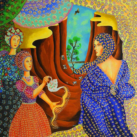 “Siento que la pintura me eligió para ser Artista Maga. Soy un Instrumento, porque no sé de dónde me dice al oído qué pintar y cuáles colores ir creando, realmente siento que voy con la corriente y flujo”. Tiene un sello entre el Realismo Mágico y el Surrealismo. Con mensajes ocultos que sólo ciertas personas logran entender, cuenta historias, mitos y sueños.
